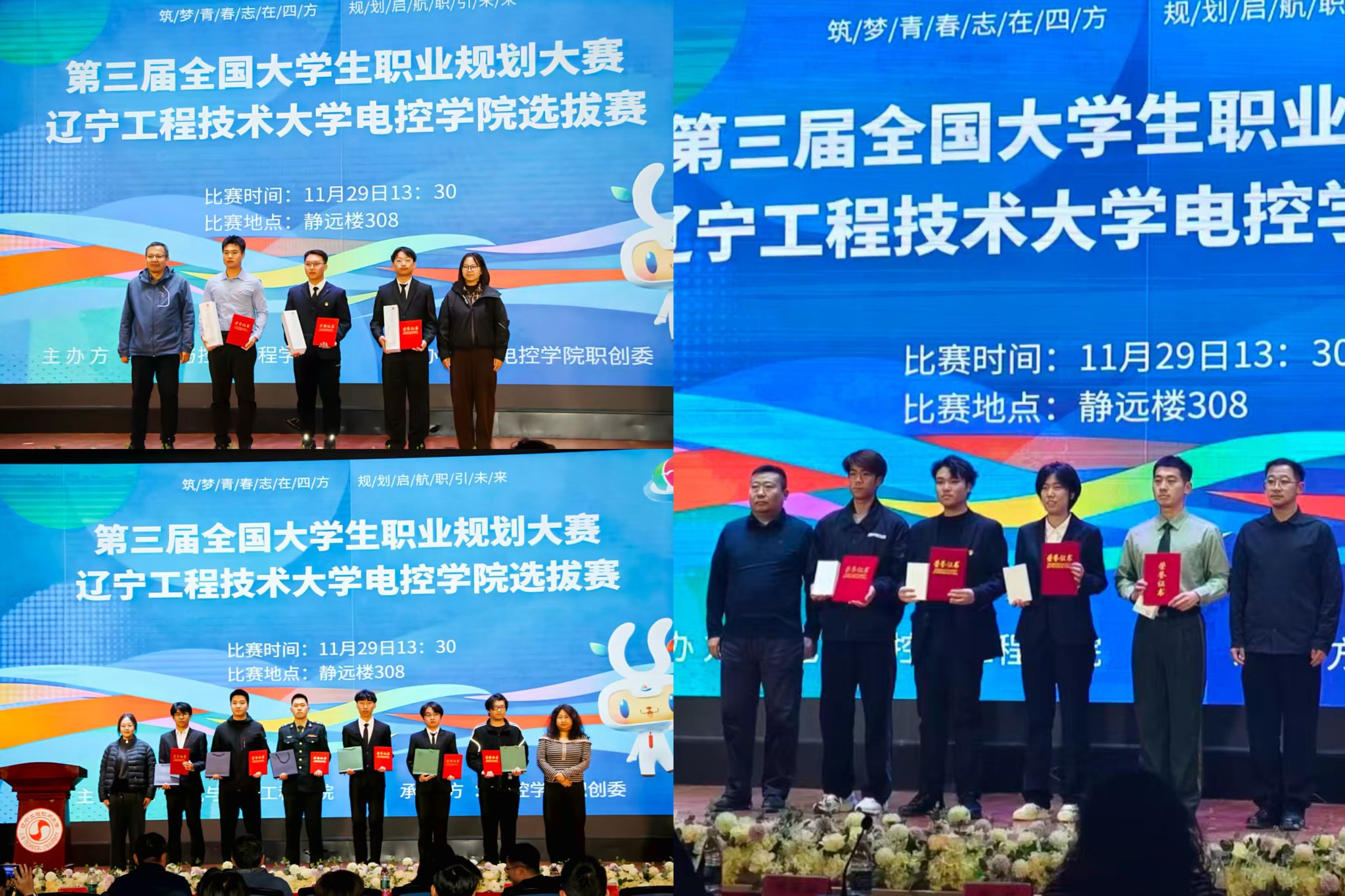 (通讯员 江雪晴)11月29日,第三届全国大学生职业规划大赛辽宁工程技术大学电控学院选拔赛决赛在葫芦岛校区大学生活动中心顺利收官。本次大赛由电控学院职创委承办,校、院两级领导老师共同担任评委,电控学院党委书记田国胜、校招生就业处招生就业服务中心主任刘士伟、电控学院党委副书记周筱淋、电控学院副处级组织员王宇、校招生就业处招生就业服务部主任张朔等出席活动。