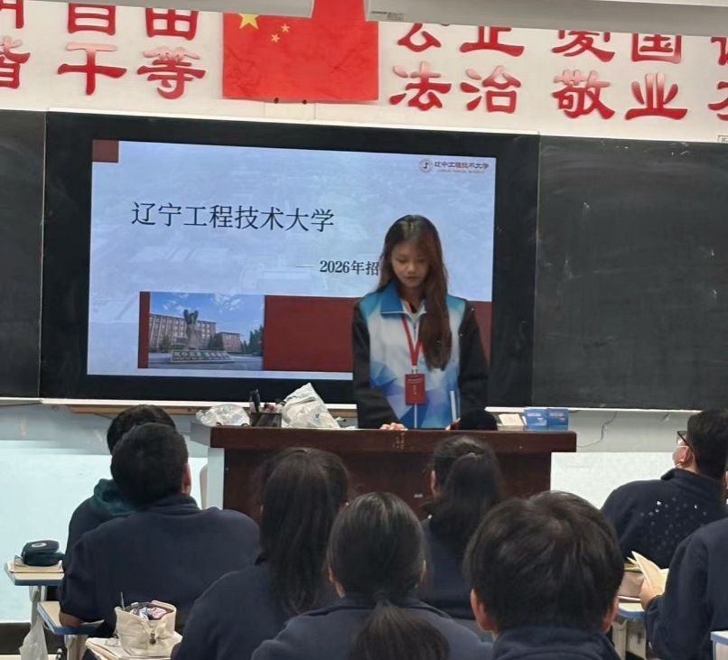 怀着对母校的深切眷恋与为辽宁工程技术大学宣传的满腔热忱,赵文嘉同学积极投身学校招生宣传实践活动,重返母校牙克石林业第一中学,以青春行动助力学校招生工作。她主动对接母校师生,细致敲定宣讲流程,认真研读招生政策、优势专业及历年录取情况,精心打磨完善宣讲素材。走进高三课堂,她向学弟学妹全面介绍学校发展历程、特色专业、校园环境、奖助体系与就业前景,并结合自身经历分享学习方法与大学生活感悟。在真诚交流中,她真切感受到高三学子对美好大学生活的热切向往,也深刻体会到招生宣传工作的责任与意义。赵文嘉同学不仅为母校学子传递了详实实用的报考资讯,助力学校吸引优质生源,更在实践中锤炼了沟通表达与组织协调能力。她表示,未来若有机会,将以更充分的准备、更多样的形式,继续为学校招生宣传工作添砖加瓦,同时也期待更多同学携手同行,以青春之力为学校高质量发展贡献力量。