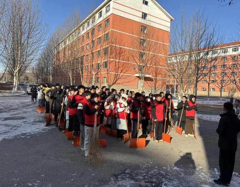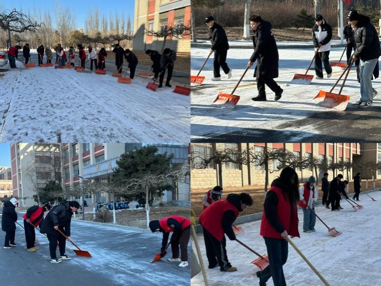 动员后,各小队迅速投入战斗。党员们不畏严寒、分工协作,铲雪除冰、清扫残雪,现场热火朝天。有的弯腰清理路面薄冰,有的合力搬运雪堆,不放过任何一处影响通行的积雪路段。经过数小时奋战,校内责任区域积雪清理完毕,为师生开辟出安全通畅的出行通道,圆满完成学校48小时内完成校内除雪的要求。