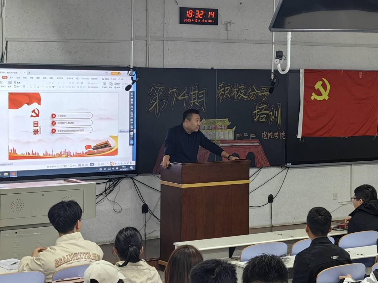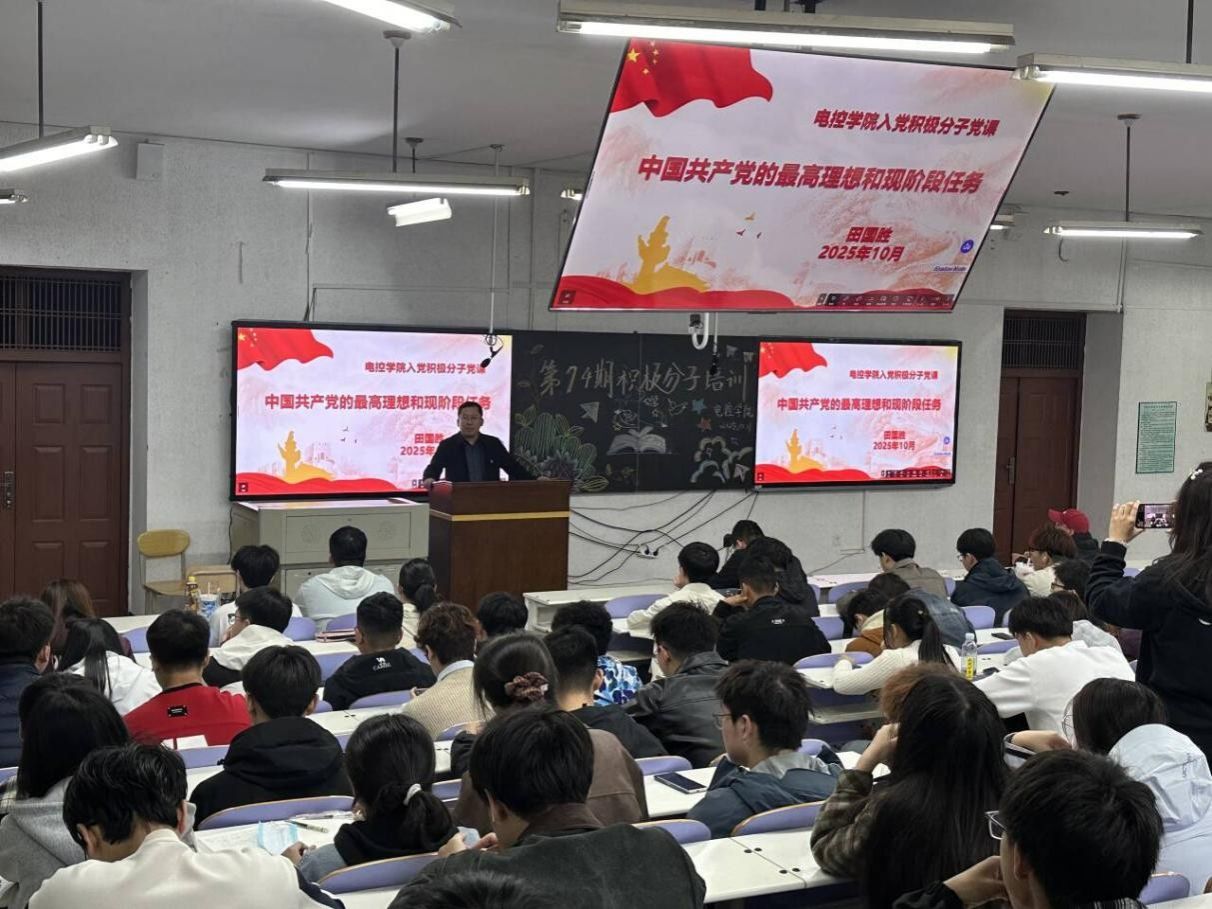 (通讯员:郭思瑶)10月9日至13日,电气与控制工程学院举办第74期入党积极分子培训班。学院党委书记田国胜,党委副书记、副院长、纪委书记周筱淋,副处级组织员王宇,学生党支部书记李莹、武书宁、组织员郭思瑶为学员讲授党课,学院研究生和本科生共计214名学员参加培训。
