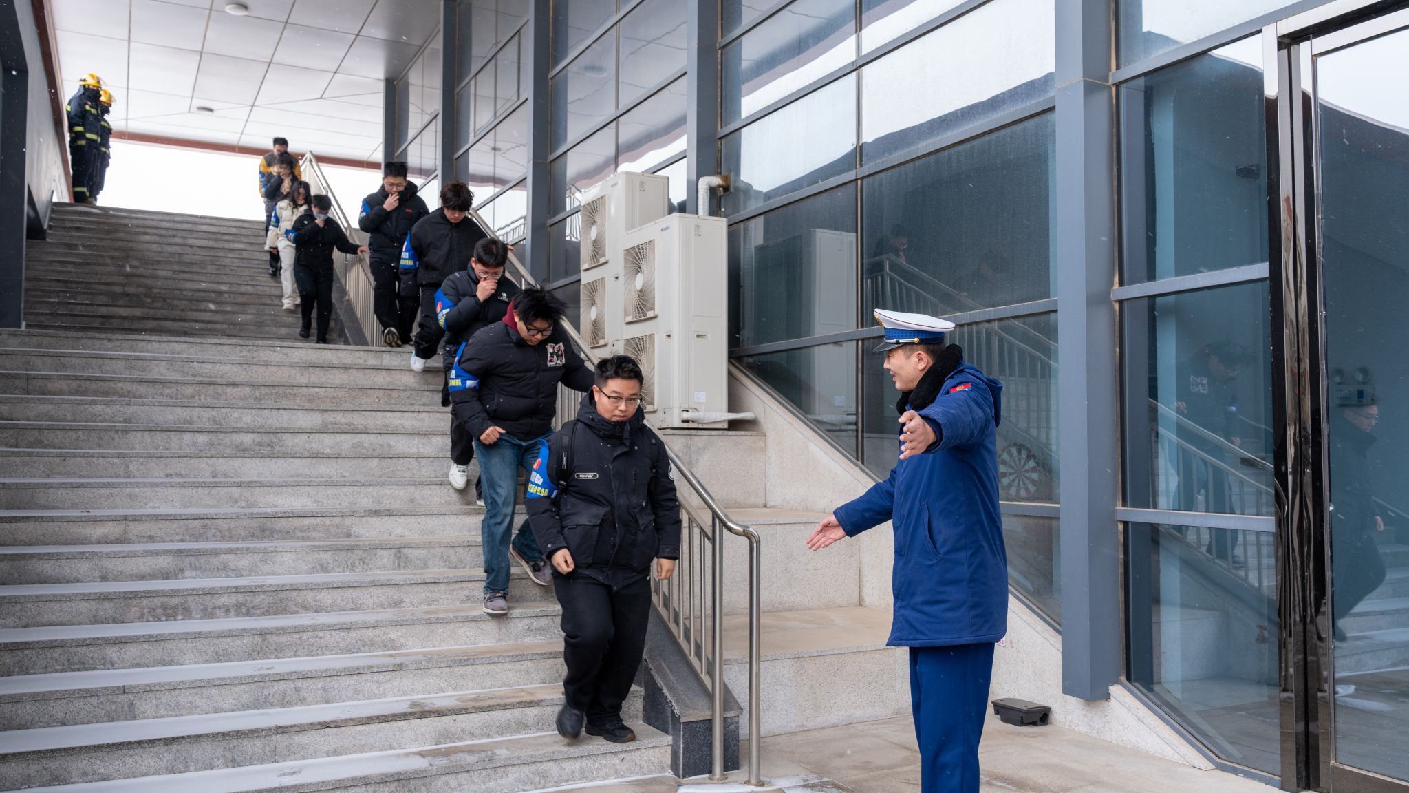 讲座结束后,模拟应急疏散演练随即启动。全体师生按照预定路线,迅速、有序地从图书馆撤离至图书馆北门外安全地带。演练过程中,师生们遵循“低姿、捂鼻、有序”的逃生原则,展现出良好的应急反应能力。